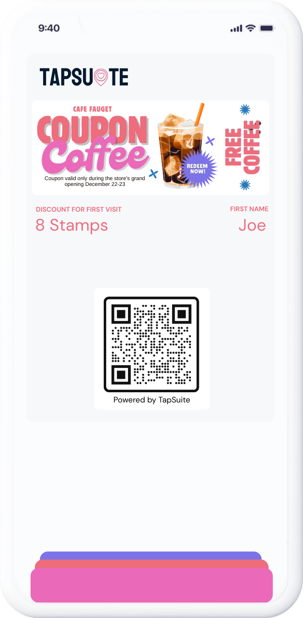 Customers scan once, add your loyalty card to their phone, and earn rewards every visit. No apps, no accounts, and no awkward moments at the counter.